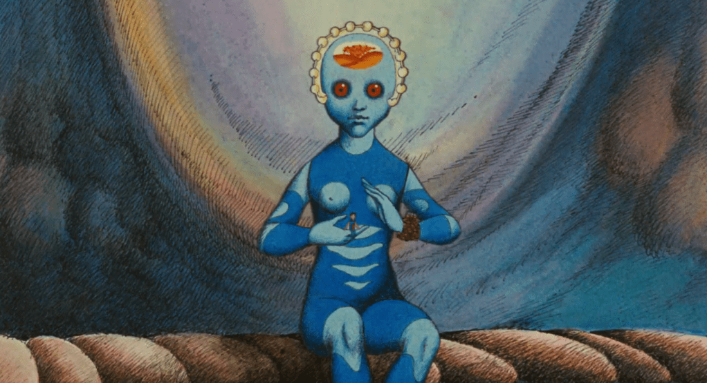 Tanto per cambiare, ieri notte non riuscivo ad addormentarmi ad un orario decente. Così ho deciso di vedermi qualcosa che avevo in lista d’attesa da tempo, una volte di più grazie ad un post visto su una pagina social cinefila poco tempo fa. “Il pianeta selvaggio” del 1973, di René Laloux. Non mi viene altra definizione se non quella di un piccolo gioiellino per quanto riguarda il genere di film d’animazione, davvero di forte impatto. Non se le mie parole renderanno l’idea, ma ci provo.